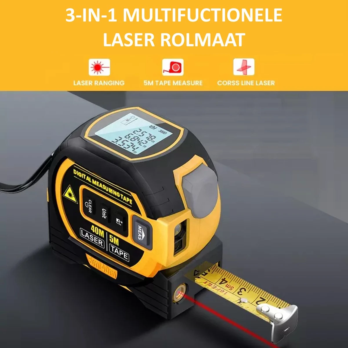 Deze 3 in-1 afstandsmeter is de ideale digitale rolmaat en laser meter in 1. De afstandsmeter is gemakkelijk te bedienen en heeft een bereik tot 40 meter. Wil je zowel op lange als korte afstand meten? Dankzij het meetlint kunt u ook korte afstanden meten tot 5 meter ver en hoef je geen twee verschillende meters bij je te hebben. Dankzij de meegeleverde clip is de afstandsmeter gemakkelijk te bevestigen aan de riem van je broek. Zo raak je deze afstandsmeter dus nooit meer kwijt!