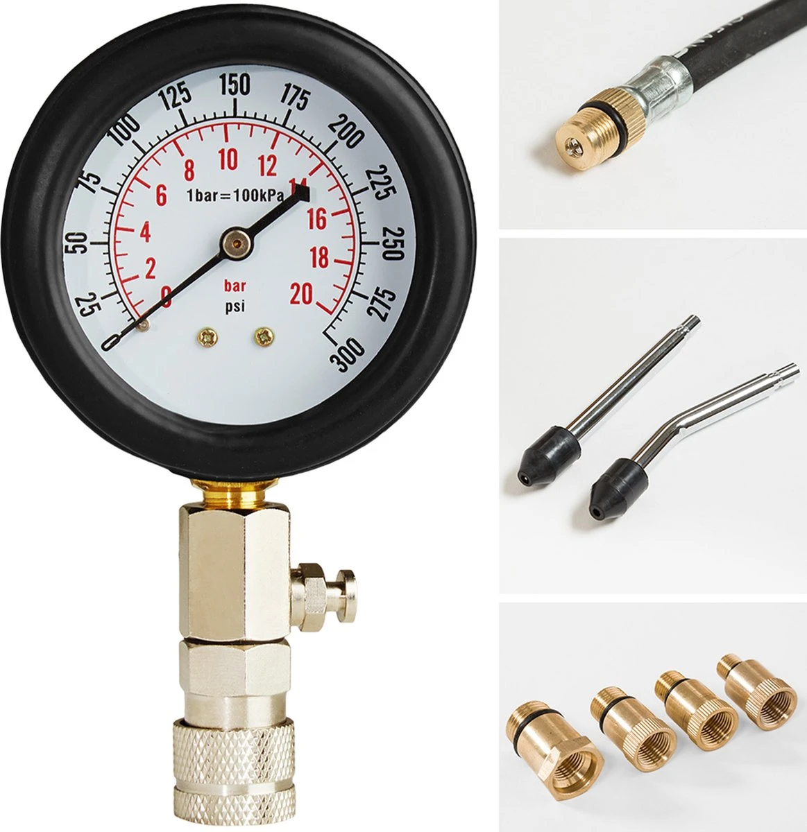 - Compressietester van 0-20 kg/cm ² of 0-300 psi