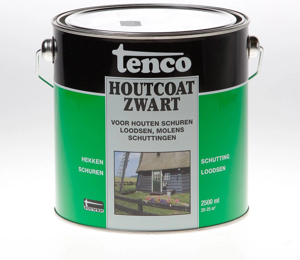 Tenco Houtcoating is een speciale, teervrije, coating voor houten objecten welke voorheen zijn behandeld met teerproducten. Op basis van alkydhars en zwarte pigmenten. Verfraait en behoudt het karakteristieke uiterlijk. Voor onder andere schuren, loodsen en schuttingen. Bestand tegen weersinvloeden.