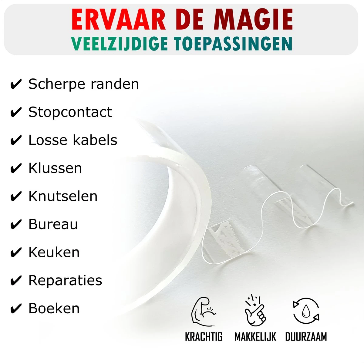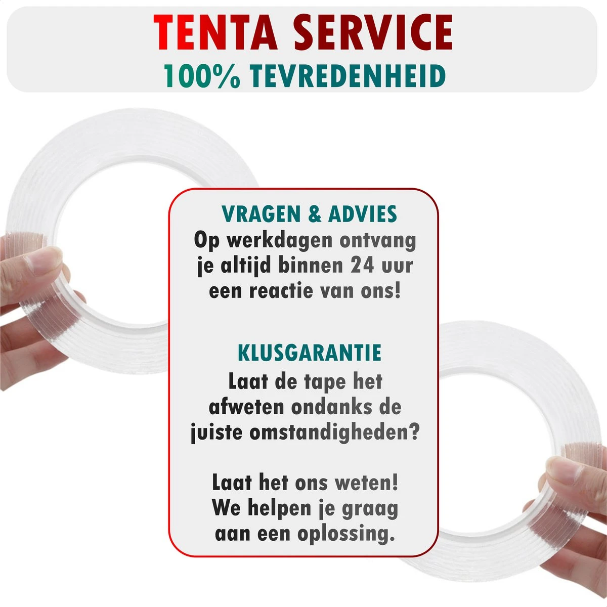 TENTA® Afplaktape is Transparant, Herbruikbaar, Waterproof, Rekbaar, Super sterk en laat geen sporen achter. Met deze enkelzijdige tape maak je gebruik van nano (suction) technologie. De werking is vergelijkbaar met de zuignappen van een octopus.