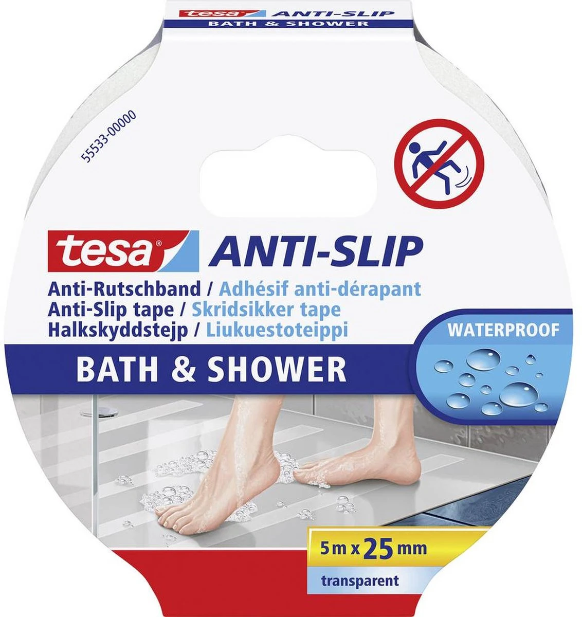 De vloeren in badkuipen en douches zijn plaatsen waar vaak sprake is van vallen. Met onze waterbestendige antisliptape vermindert u dit risico drastisch. De transparante tape past in elk badkamerdesign en zorgt met zijn sterke kleefstof van acryl voor een stevige grip. Uiteraard kunt u het antislipplakband ook in andere risicozones gebruiken, bijvoorbeeld op traptreden. Voor het gebruik van de antisliptape hebt u slechts een schaar nodig.