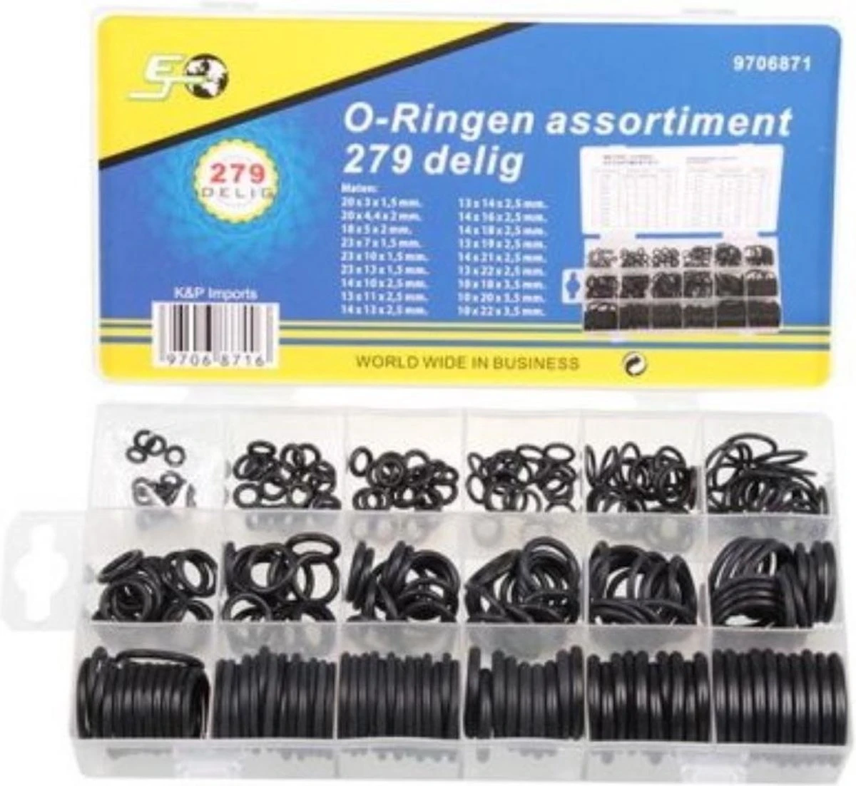 Rubberen O-ringen, verschillende maten t.b.v. afdichten van verschillende sanitaire voorzieningen, denk aan kranen etc.