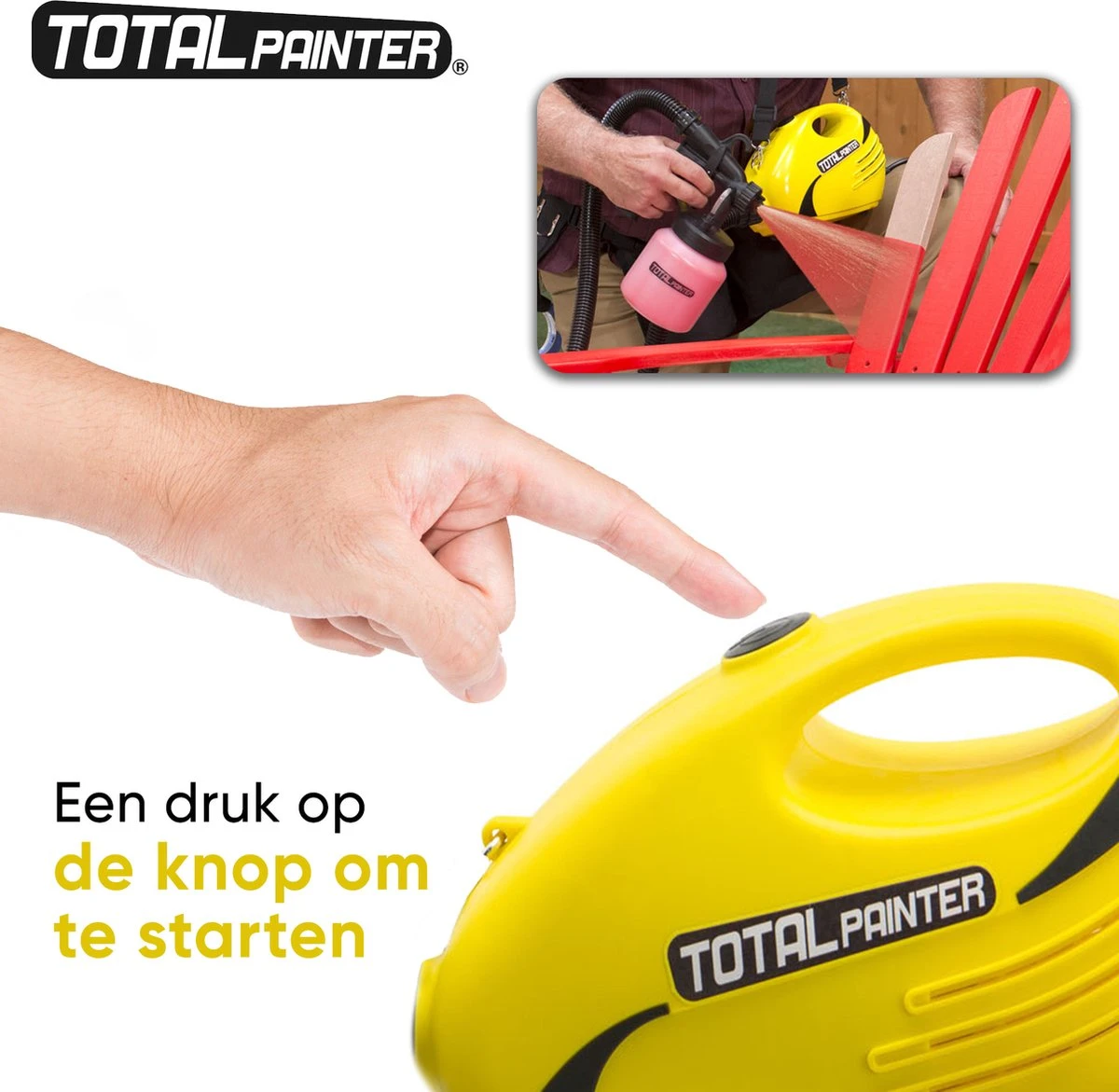 Het grote voordeel van dit Total Painter verfspuit systeem is dat het helemaal niet moeilijk is om te gebruiken. Schilderen kan een grote en tijdrovende klus zijn, zeker als je het goed wil doen. Voortaan hoef je niet meer op te zien tegen schilderwerk, hoe groot het te schilderen oppervlak ook is. Je bespaart de helft van de tijd dankzij de krachtige motor van dit handige apparaat want het vermogen is maar liefst 900 watt.