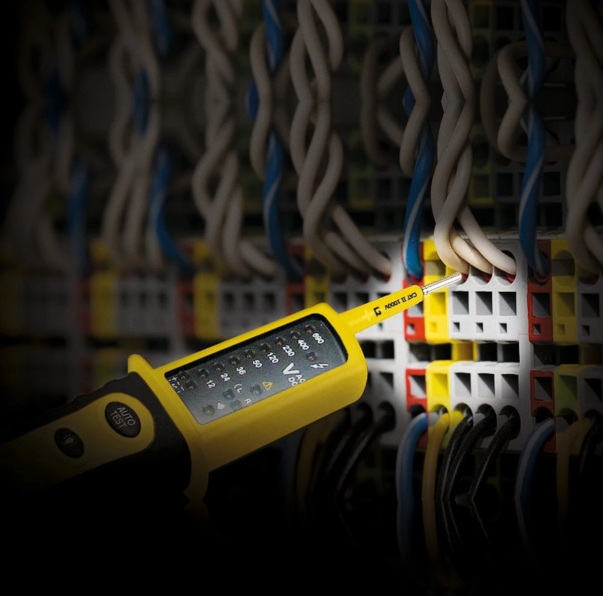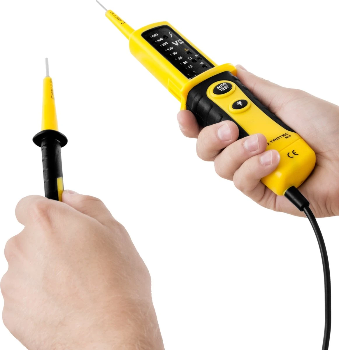 Gebouwd en gecontroleerd volgens strenge normen, met veel professionele functies uitgerust en dankzij beschermingsgraad IP64 ook uitstekend uitgerust voor de ruwe dagelijkse praktijk – deze tweepolige spanningstester is het optimale meetapparaat voor elektrische installateurs en ambitieuze doe-het-zelvers.