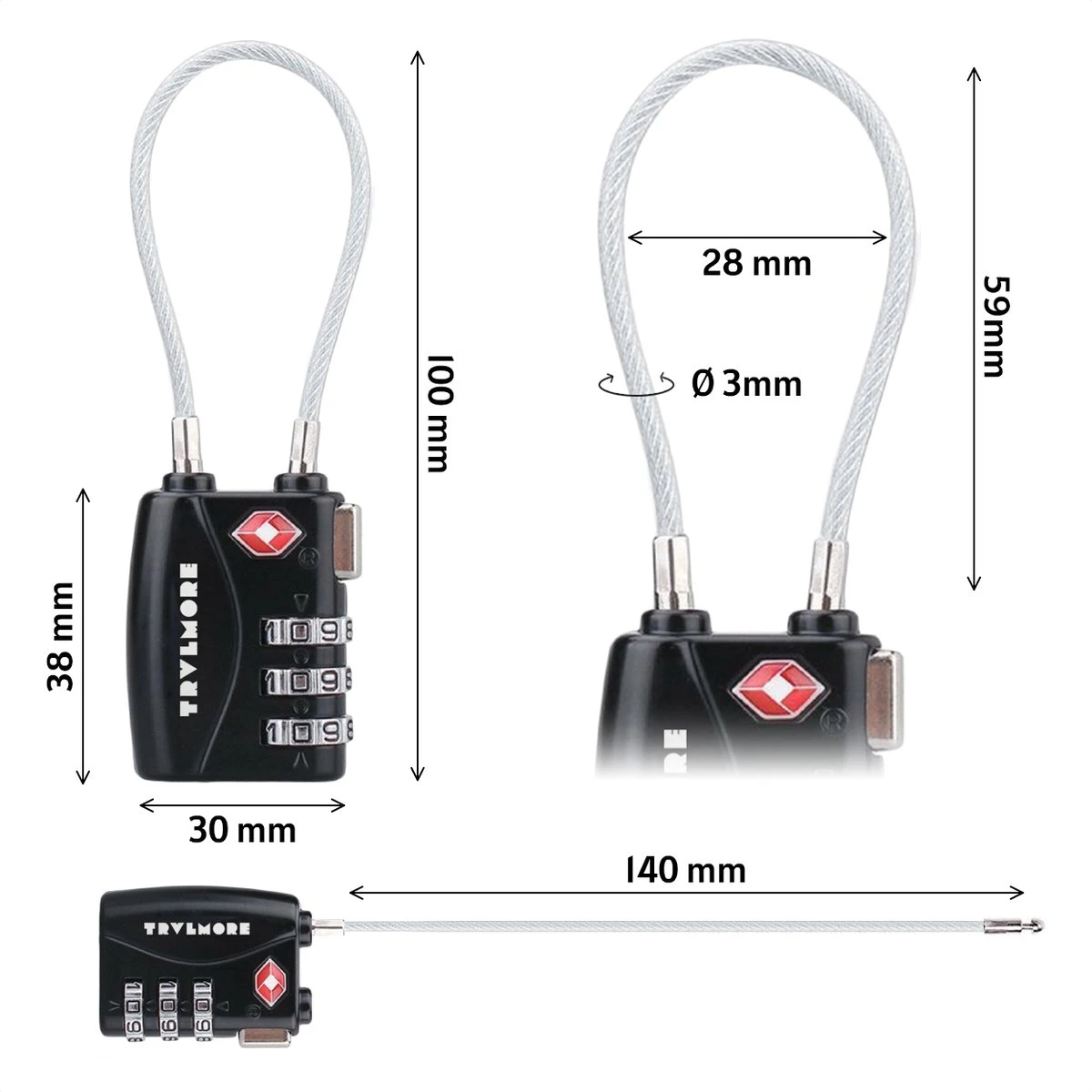 Gebruiken als: TSA kabelslot met 3-cijferig combinatie, reisslot, bagageslot, hangslot, kofferslot, backpackslot.
