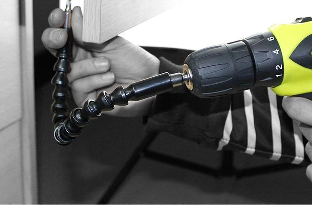 Stap 1: Bevestig de flexibele bithouder in de accuboormachine. Dit werkt hetzelfde als met boortjes en bitjes.