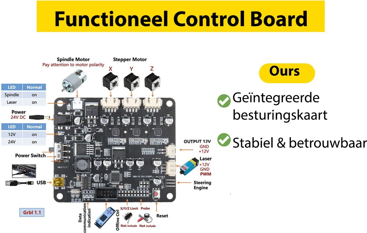 FUNCTIONEEL CONTROL BOARD: De GBRL Besturingskaart kan worden aangesloten via een USB-kabel naar een computer. Het beschikt over volledige functionaliteit en blijft het goed doen na langdurig gebruik.