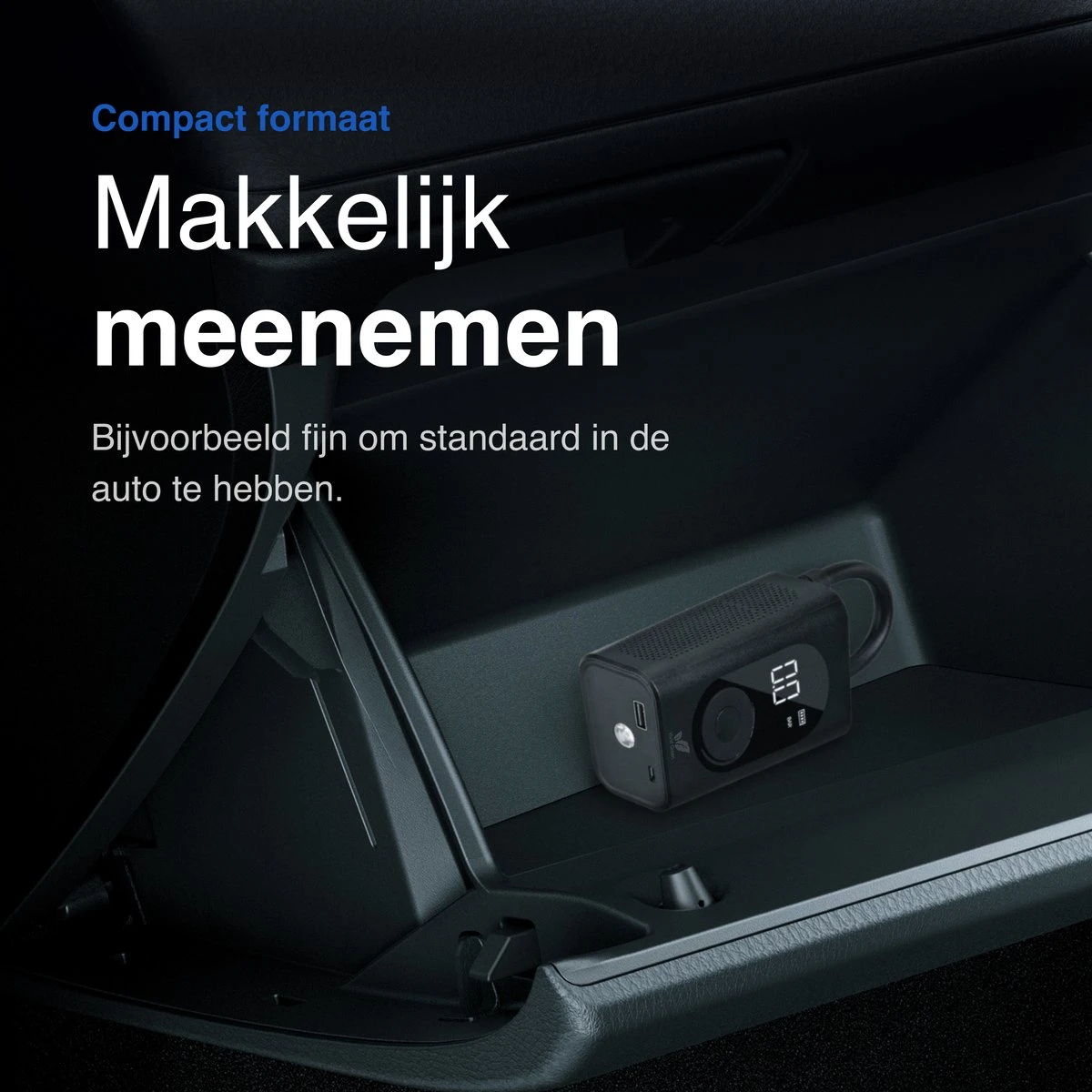 Dankzij het compacte formaat heb je altijd een bandenpomp binnen handbereik. Handig om uit te lenen wanneer de kinderen weer ergens overnachten op een luchtbedje, er op een veld wordt gevoetbald met een slappe bal of om de redder in nood te zijn bij een slappe fietsband. En dit wordt allemaal mogelijk gemaakt door de krachtige oplaadbare accu van 4000 mAh die gebruik maakt van USB-C.