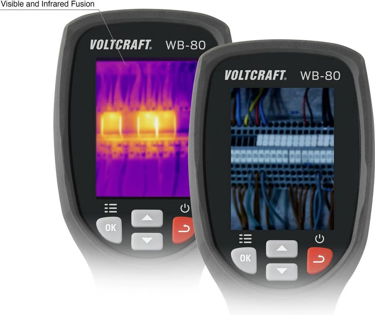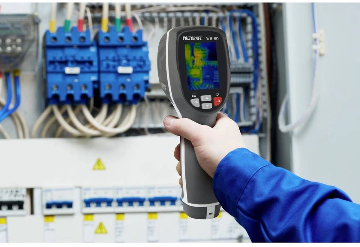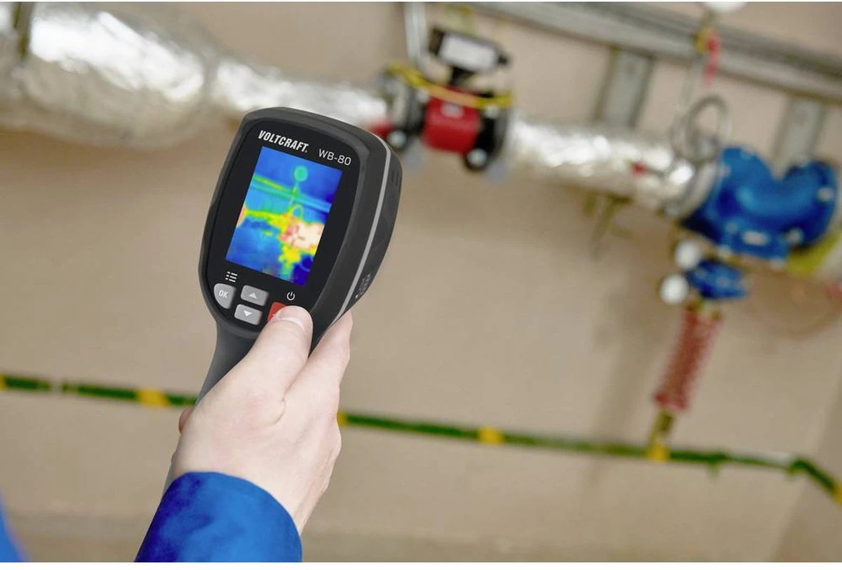Contactloze temperatuurmeting Scheuren in de gevel of lekkage in leidingen – de toepassingsgebieden van Voltcraft WB-80 zijn veelzijdig. Met vaste brandpuntsafstand en een thermische gevoeligheid van 247 mK is dit instrument ook geschikt voor het controleren van installaties op zonne-energie, machines of verwarmingssystemen in een temperatuurmeetbereik van -20 tot +600 °C. Een bolometer met 32 x 32 pixels dient voor de meting over het hele golflengtespectrum bij een beeldfrequentie van 9 Hz. Om de juiste temperatuur te meten, kan de emissiegraad op het te meten materiaal worden ingesteld en bovendien is er een temperatuurcompensatie beschikbaar om te voorkomen dat de omgevingstemperatuur wordt beïnvloed. Gedetailleerde analyse De WB-80 ligt dankzij de ergonomische constructie niet alleen goed en veilig in de hand, hij beschikt onder andere over de praktische cold- en hot-spot-tracking-functie om gemakkelijk de warmste en koelste plaatsen te herkennen. Het 2 inch grote TFT-LC-display maakt weergave in 4 kleurpaletten mogelijk: Iron Red (rood), kleur RGB, grijstinten (witte warmte), grijstinten (zwarte warmte). Daardoor kunnen opgenomen objecten voor een betere analyse met een zo groot mogelijk contrastbereik worden weergegeven. Intern kunnen meer dan 100 opnames worden opgeslagen en voor de gegevensoverdracht is een USB-aansluiting aanwezig. De camera is spatwaterdicht conform IP54 en voor direct gebruik worden batterijen en een praktische schoudertas direct meegeleverd.