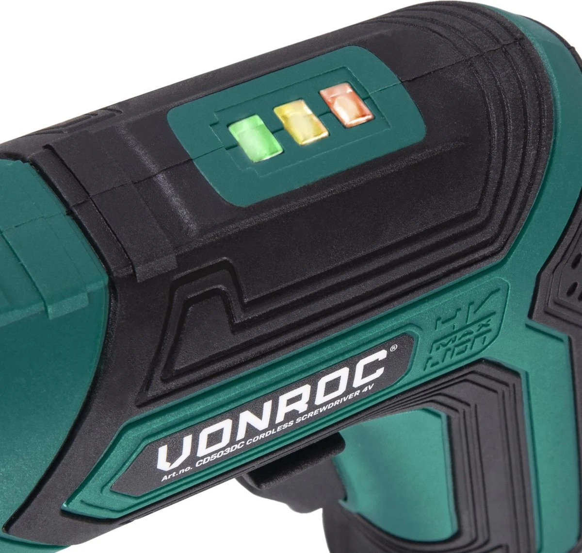 De VONROC Li-Ion accu schroefmachine heeft een ergonomisch handvat met softgrip en een compact ontwerp. Makkelijk op te bergen in bijvoorbeeld je keukenla of om mee te nemen in je tas. Door de as vergrendeling is de schroefmachine ook als schroevendraaier te gebruiken. Super handig als je schroeven extra vast wil draaien of als de accu leeg is.