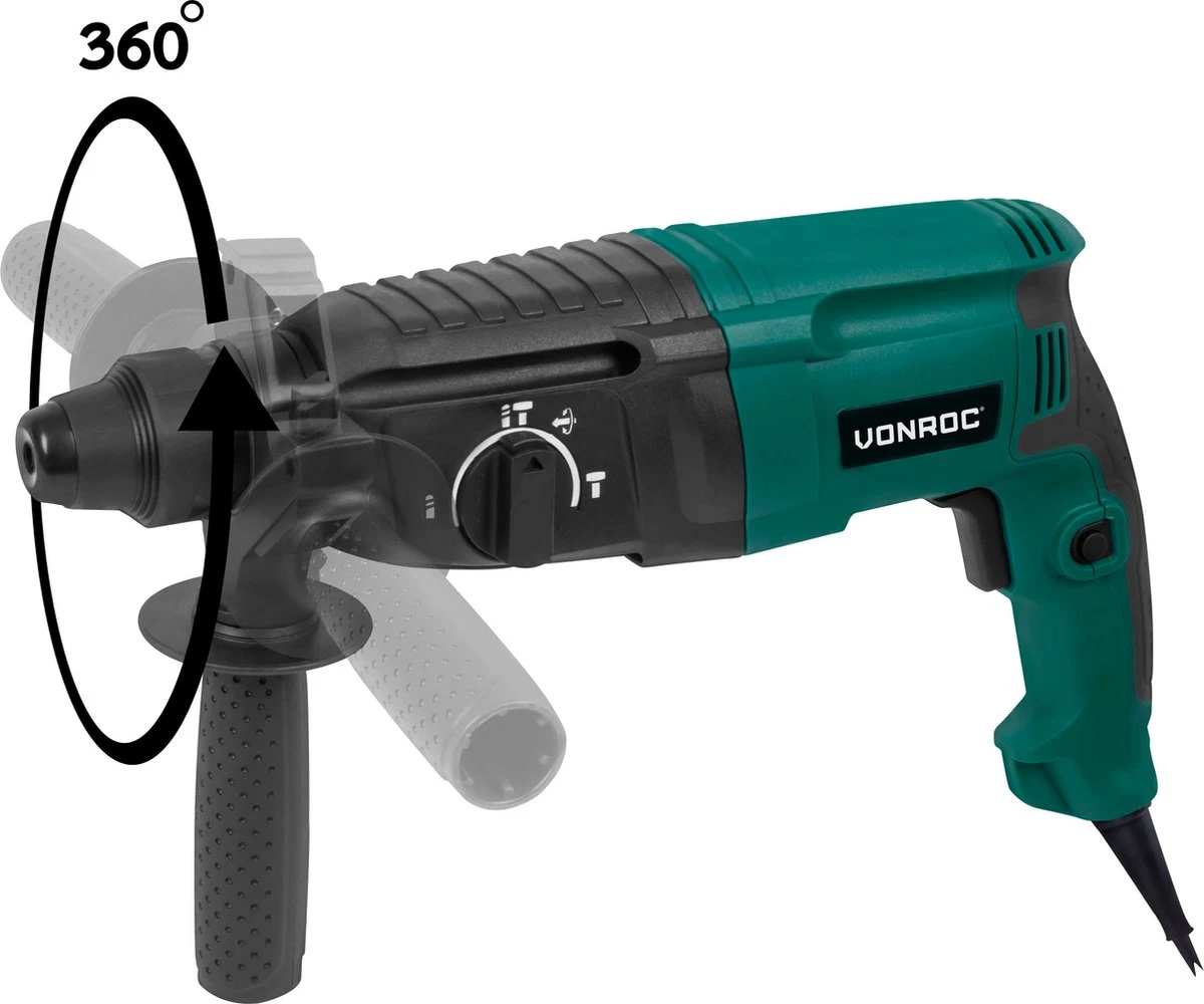 VONROC 800W – 3 Joule boorhamer voor een snelle voortgang bij boren, hamerboren, beitelen en instellen van de beitel positie