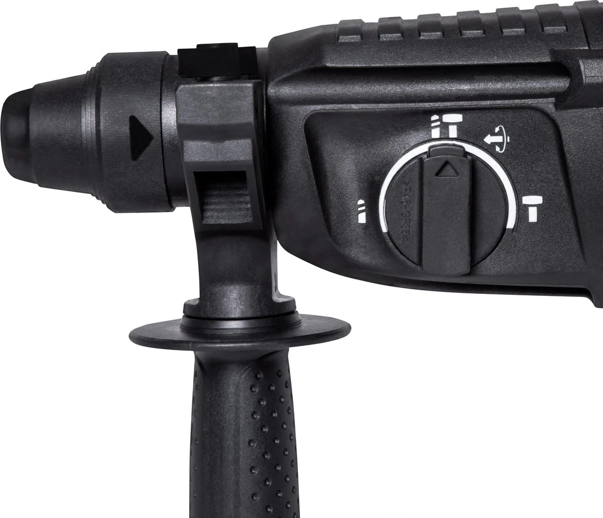 Deze boor- en beitelhamer van VONROC beschikt over vier functies; boren, hamerboren, beitelen en instellen van de beitel positie. Dankzij het krachtige vermogen van 800W en het pneumatische slagmechanisme met 3 Joule aan slagkracht, boek je een soepele voortgang bij de verschillende werkzaamheden. De boorhamer wordt geleverd inclusief een tandkransboorkop, 3 SDS-plus betonboren, 2 SDS-plus beitels, een dieptestop, een extra handgreep en een opbergbox voor de accessoires. Na levering kun jij dus direct aan de slag met je klus!