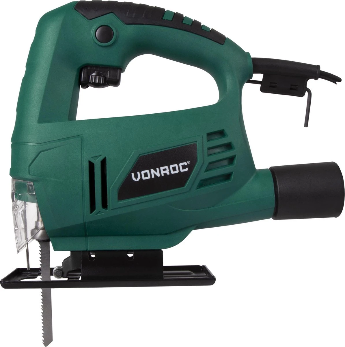 Snel en precies hout en metaal doorzagen doe je met de JS502AC Decoupeerzaag van VONROC. De bodemplaat is met behulp van de bijgeleverde inbussleutel kantelbaar in een hoek van -45° tot 45°. Daarnaast is de bodemplaat ook verstelbaar naar voren en naar achteren. Hiermee kan je bijvoorbeeld plinten verstek zagen en lastige hoeken beter bereiken, maar ook metaal en roestvrijstaal fijn zagen.