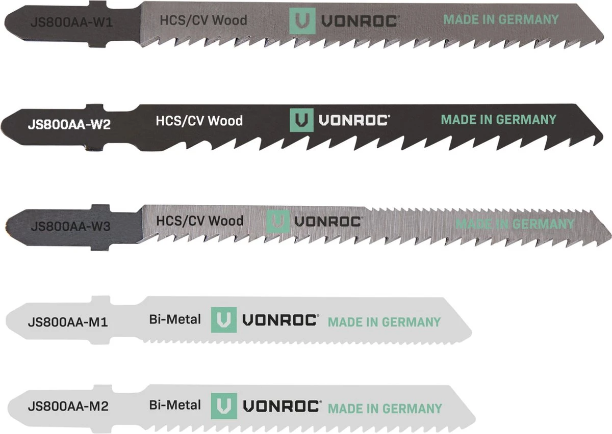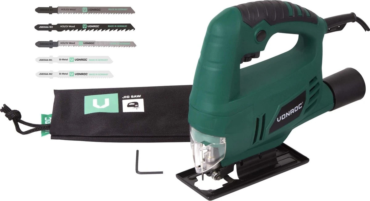Deze VONROC 550W decoupeerzaag bevat 3 zaagbladen geschikt voor het bewerken van hout en 2 zaagbladen geschikt voor het bewerken van metaal. De zaagbladen zijn voorzien van een T-schacht aansluiting. Geen klus is onmogelijk met deze complete set!