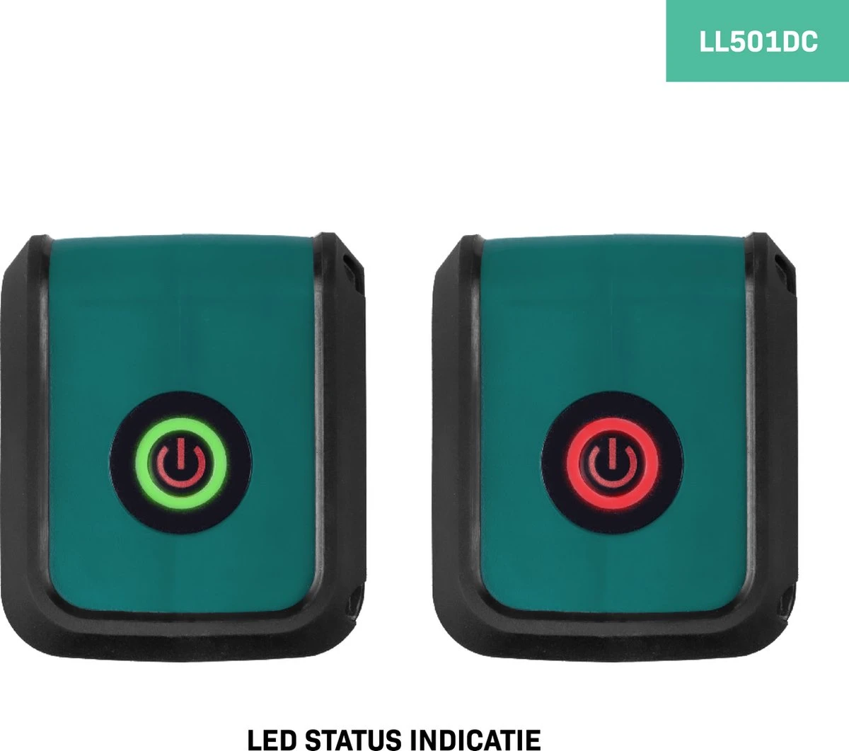 - LED-statusweergave: wanneer het apparaat niet goed genoeg waterpas geplaatst is (en daardoor buiten het zelfnivellerings bereik valt) dan geeft het een rood lampje en een groen lampje wanneer het wel goed genoeg waterpas geplaatst is .