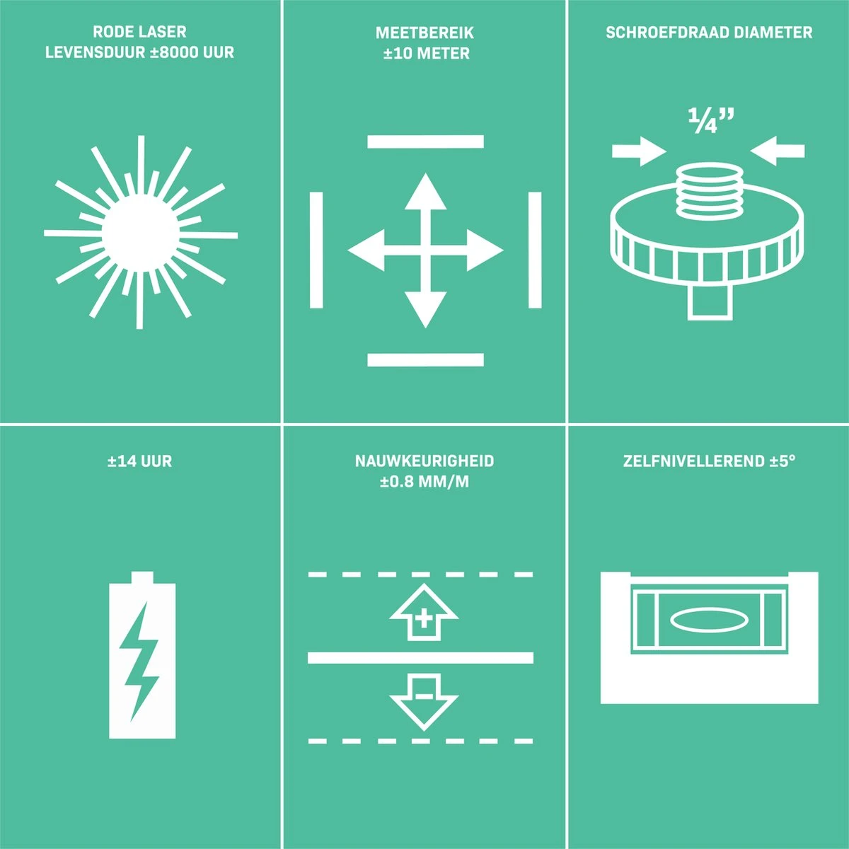 - Aantal laserstralen: 2 (1x verticaal/1x horizontaal)