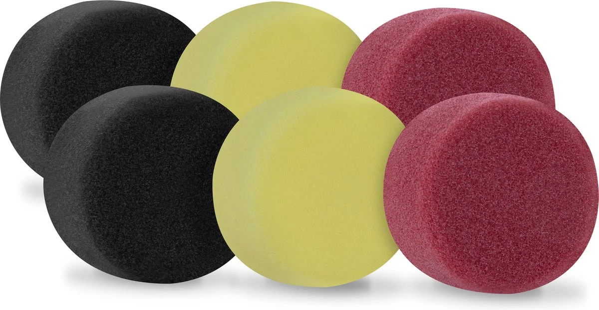 De rode polijstpads in deze set zijn geschikt voor het verwijderen van krassen en het laten verdwijnen van oneffenheden in de lak. De gele polijstpads in deze set zijn geschikt voor het verwijderen van ondiepe oneffenheden in de lak en het creëren van een optimale glans. De zwarte pads zijn voor het aanbrengen van poetsmiddelen, was en sealants én het creëren van glans. Je kunt ze gebruiken voor de laatste stap van het polijstproces, maar ze zijn ook geschikt wanneer je alleen een wax wil aan brengen.