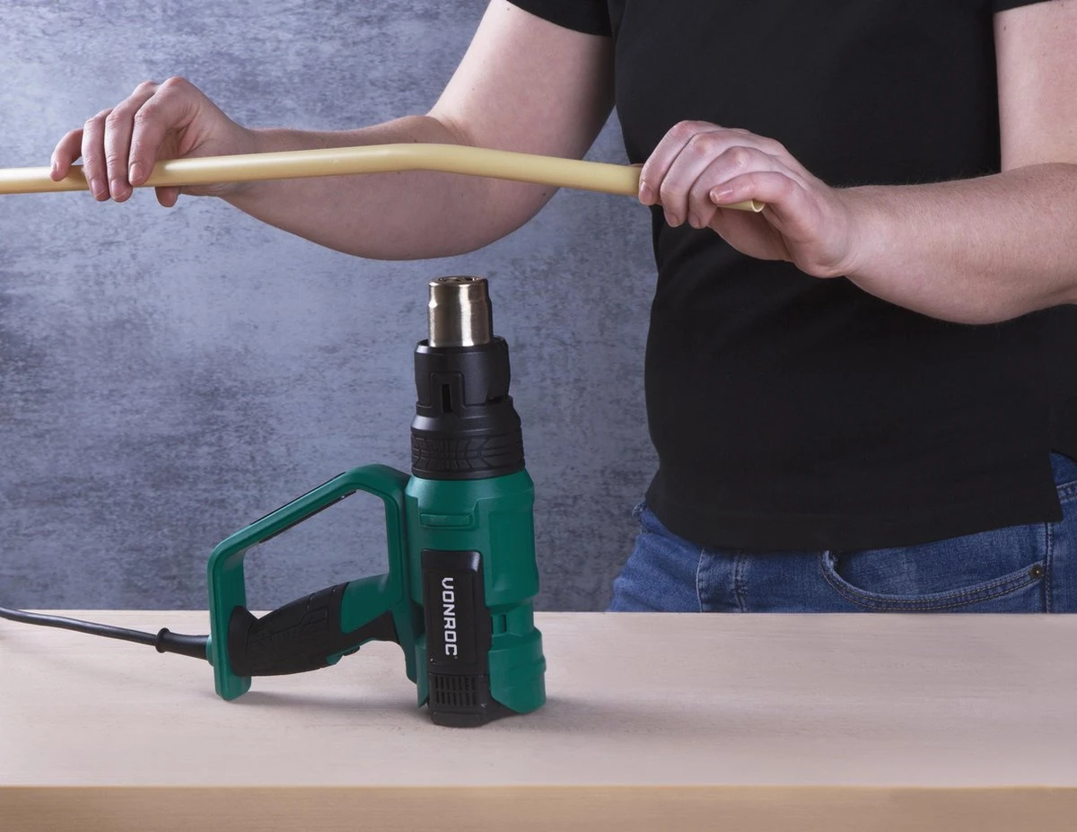 - Stationair te gebruiken, zo heb je twee handen vrij om bijvoorbeeld een PVC buis te buigen