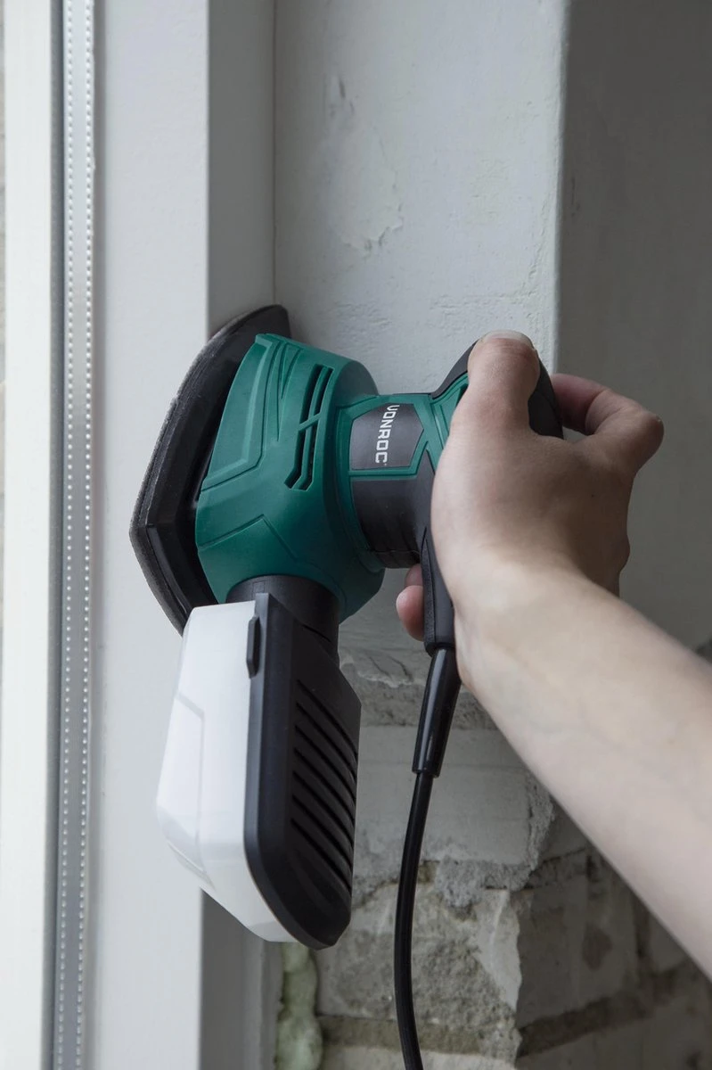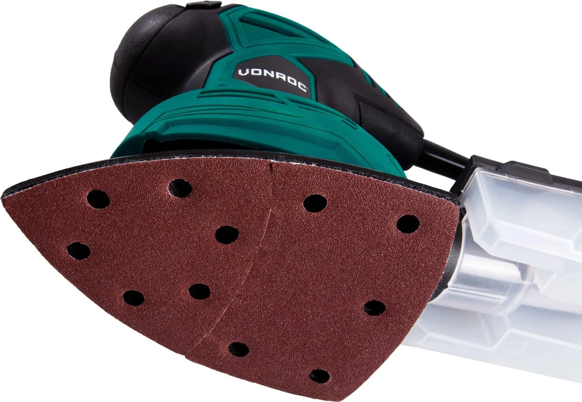 Deze multifunctionele schuurmachine van VONROC is in te zetten voor bijna elke schuurklus in- en rondom het huis! Zelfs lastig te bereiken plekken zijn geen probleem dankzij de puntvormige schuurzool. Dankzij het hoge toerental en aantal schuurbewegingen per minuut wordt materiaal snel verwijderd.