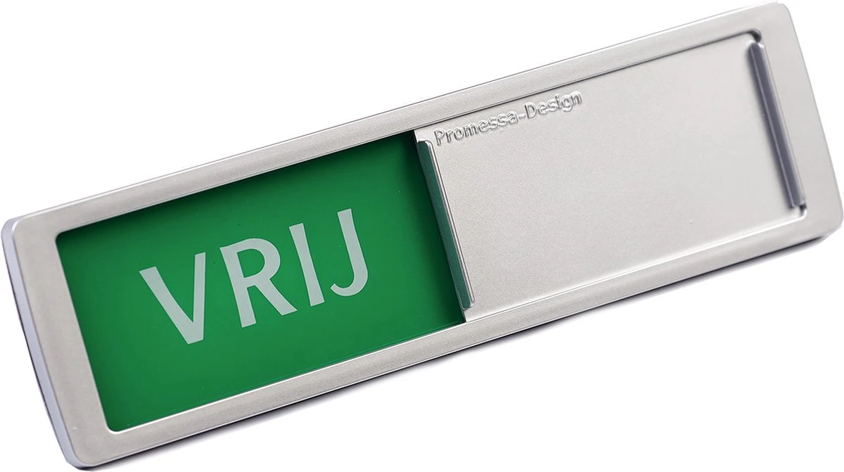 Vrij – Bezet Schuifbordje – Hoge Kwaliteit – Aluminium Look – 17,5 Cm X 5 Cm X 0,6 Cm – Promessa Design.