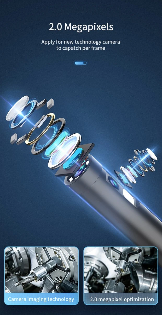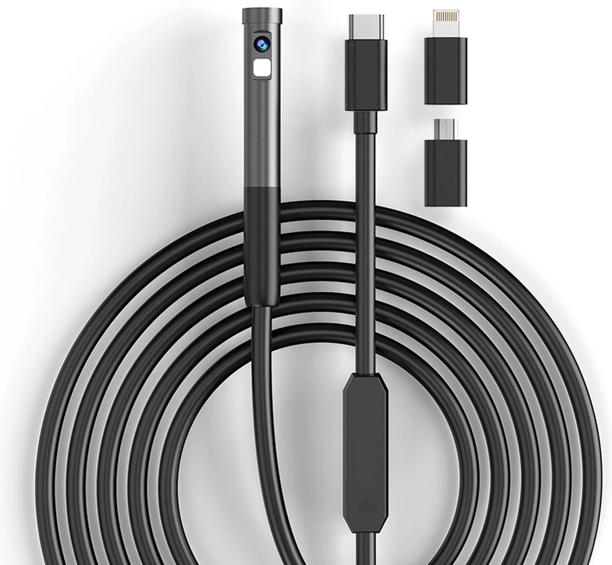 Onze endoscopische camerakabel is semi-rigide en hierdoor gericht te dirigeren naar een te inspecteren punt. De endoscoop is voorzien van 2 cameralenzen met een beeldtransmissie van 1080P. Verder bevat de camerasonde 6 leds waardoor u een nog helderder beeld op uw smartphone ontvangt.