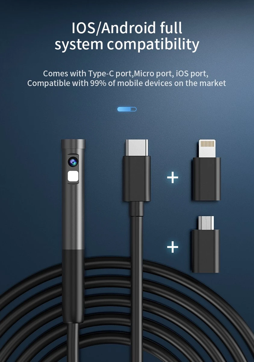 Wil je een lastig bereikbare plek inspecteren, meer wil je geen dure en bulkerige Inspectieapparaat kopen? dan is de W300 endoscoopcamera voor je smartphone de oplossing voor jou! De W300 inspectiekabel is gemakkelijk aan te sluiten op je smartphone (IOS en Android) waardoor een externe accu of inspectieapparaat overbodig is.