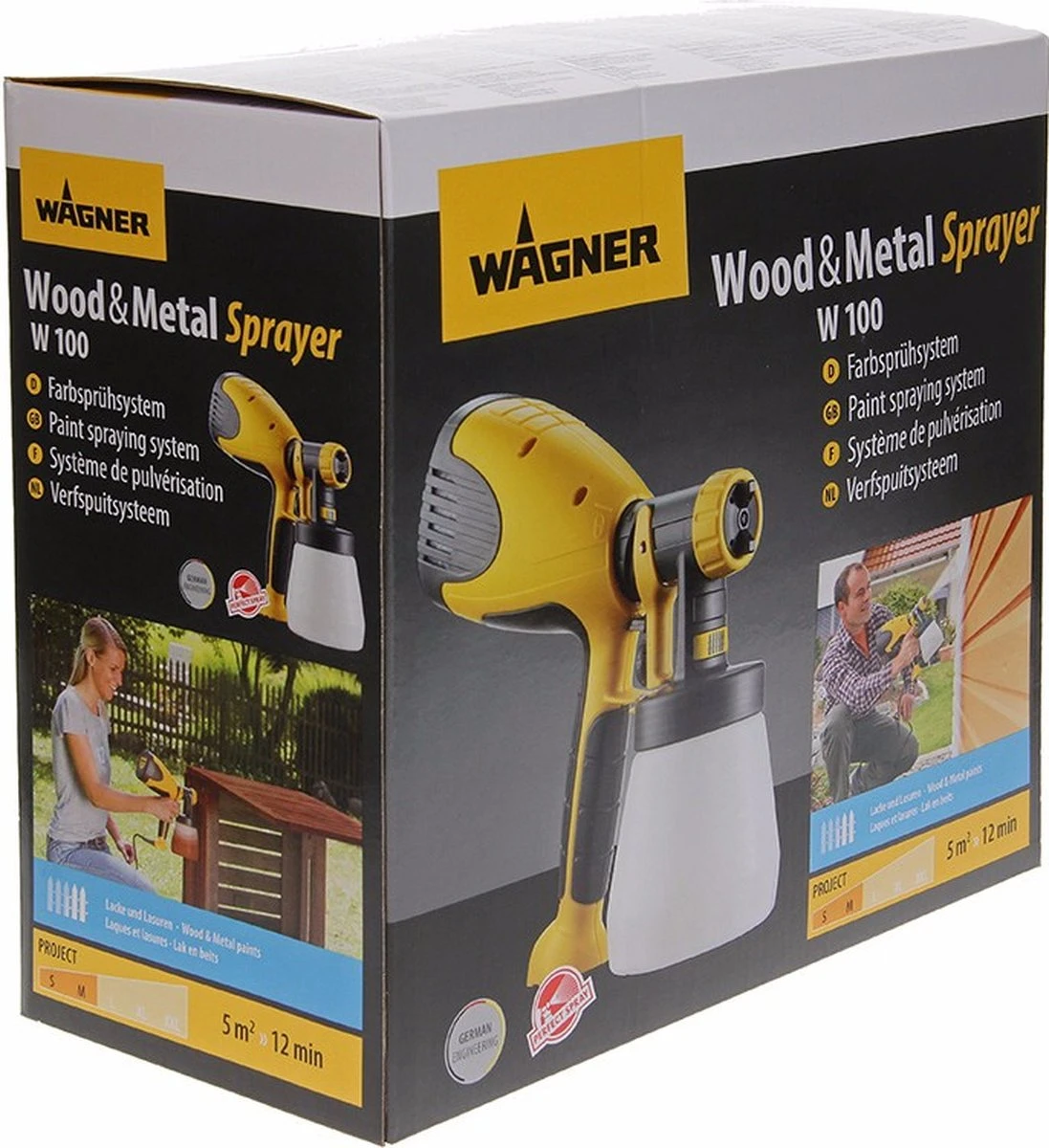 Airless Wagner W100 is een elektrische HVLP verfspuit die universeel te gebruiken is voor het dekkend, strak en egaal spuiten van iedere verf of lak soort! Deze HVLP verfspuit van Wagner sluit je middels een stroomkabel aan waardoor deze overal en door iedereen te gebruiken is; zowel binnen als buiten. De Wagner W100 verfspuit kan gebruikt worden voor het spuiten van o.a.: