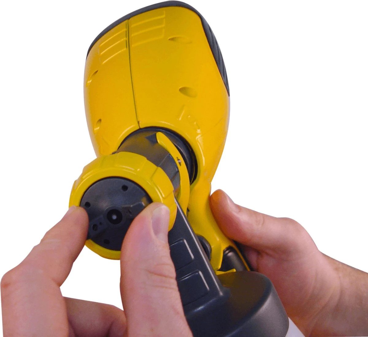 Wagner W100 HVLP airless verfspuit is uitgerust met een drievoudige spuitkop die verstelbaar is. Dankzij de verstelbare spuitkop kan je de airless verfspuit in 3 verschillende standen gebruiken, namelijk:
