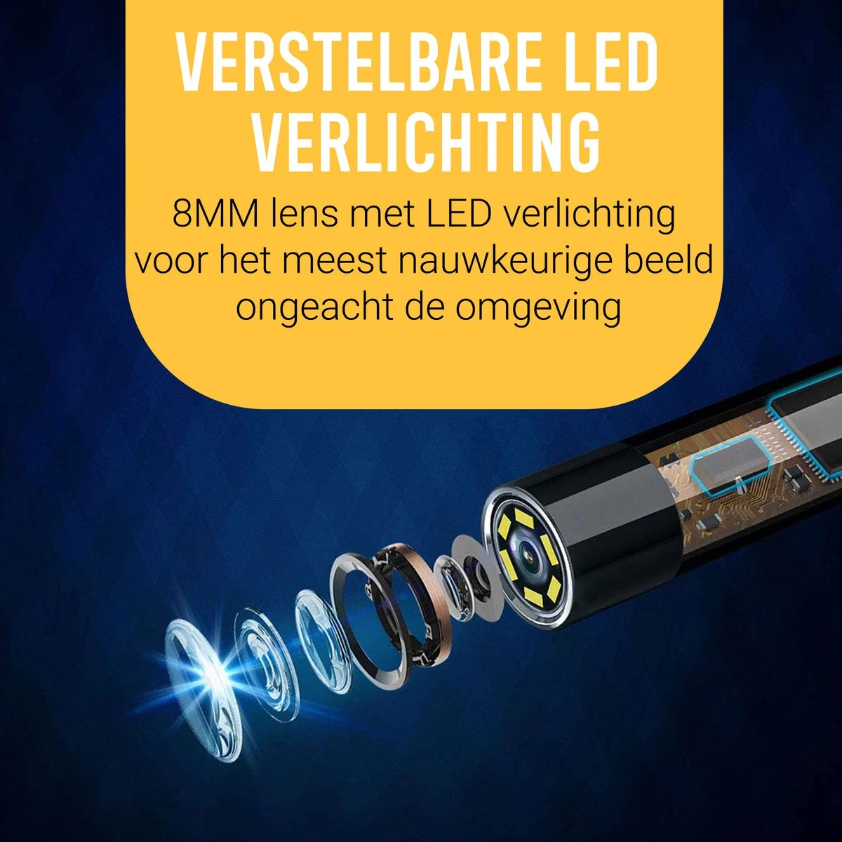 Wil jij moeilijk bereikbare plekken kunnen inspecteren zonder daar een specialist voor in te hoeven huren? Met deze endoscoop kun je voortaan heel gemakkelijk een blik werpen op de meest onmogelijke plekken! Deze inspectie camera is voorzien van een HD 2.0 MP lens, is eenvoudig te bedienen en zorgt daarnaast voor kristalheldere beelden. De endoscoop camera is voorzien van ingebouwde LED verlichting, waardoor je ook slecht verlichte plekken kunt inspecteren, en neemt alles in 1080P HD op.