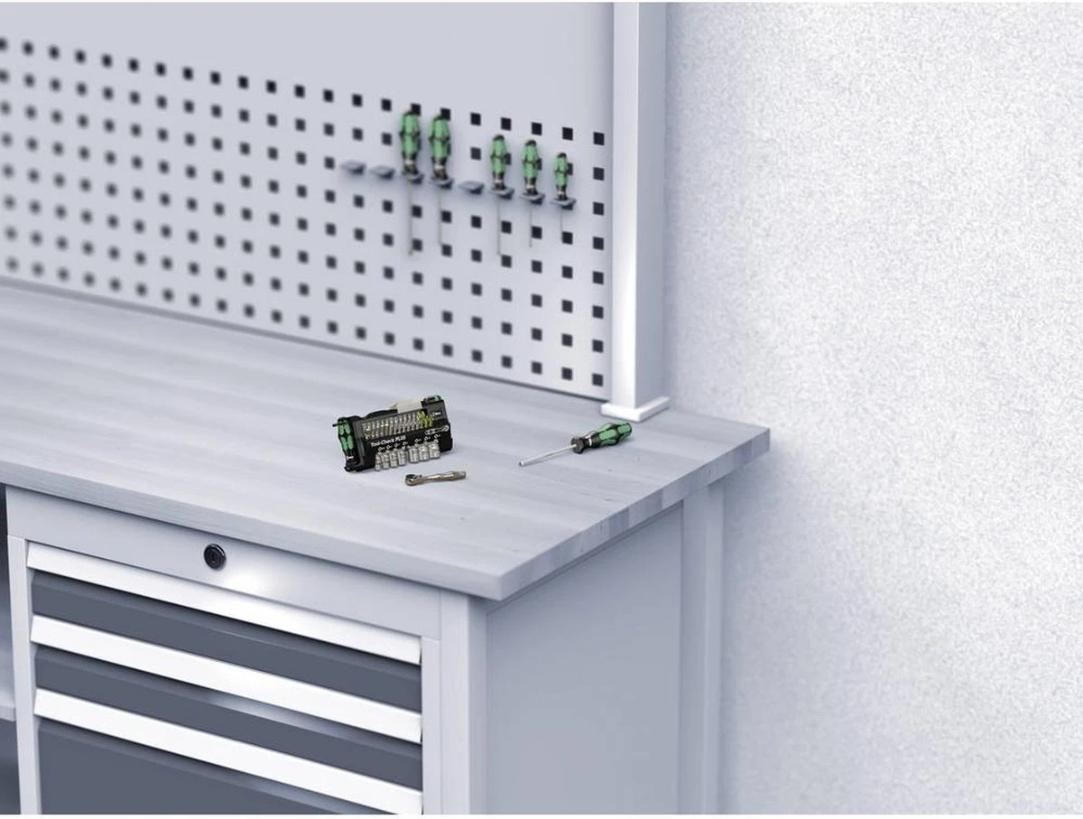 - 29 x torsiebits: gleuf 1 x 5,5 mm; kruiskop-PH 2 x PH 1/3 x PH 2/1 x PH 3; kruiskop-PZ 1 x PZ 1/3 x PZ 2/3 x PZ 3; torx T 10/15/20/25/30/40; torx tamper TR 10/15/20/25/30; inbus SW 3/4/5/6/8 mm.