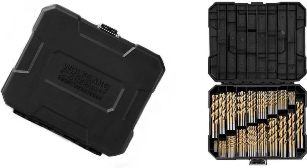 Met deze 170-delige borenset van Wolfgang Germany heb je altijd de juiste formaat boor bij de hand! De set wordt geleverd in een handige opbergkoffer. De boren zijn gemaakt van HSS (High Speed Steel) titanium en voorzien van een speciale coating voor een hogere hardheid. De boren blijven daardoor ook langer scherp. De boren zijn geschikt voor kunststof, (hard)hout en metaal. Let op: de set is minder geschikt voor harde materialen als RVS.