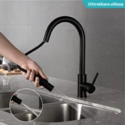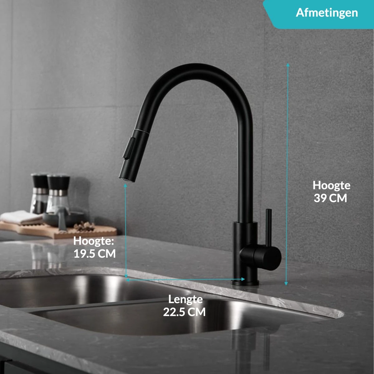 Met stijlvol design, 2 slimme kraanfuncties en een uittrekbare sproeier is deze matte zwarte kraan
